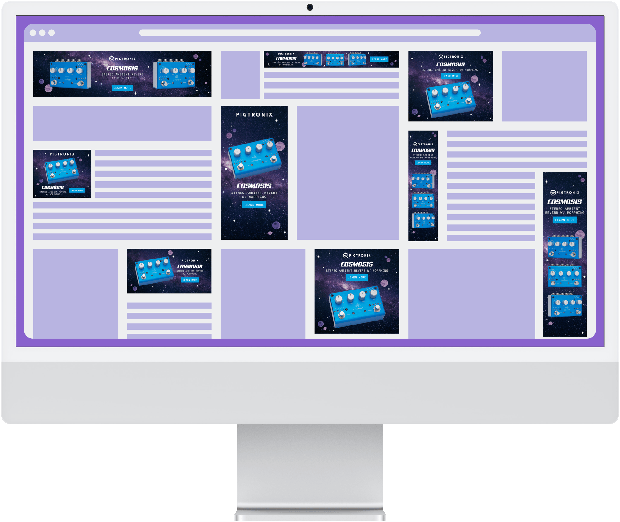 As Senior Graphic Designer, I designed pedal artwork, packaging, print and digital marketing collateral, social media graphics, event signage, merchandise, and website assets.